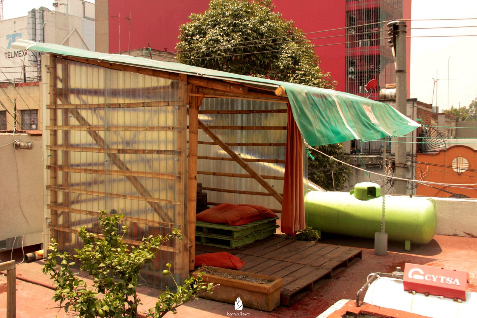 Estructura ligera para albergar una habitación de meditación en una azotea.