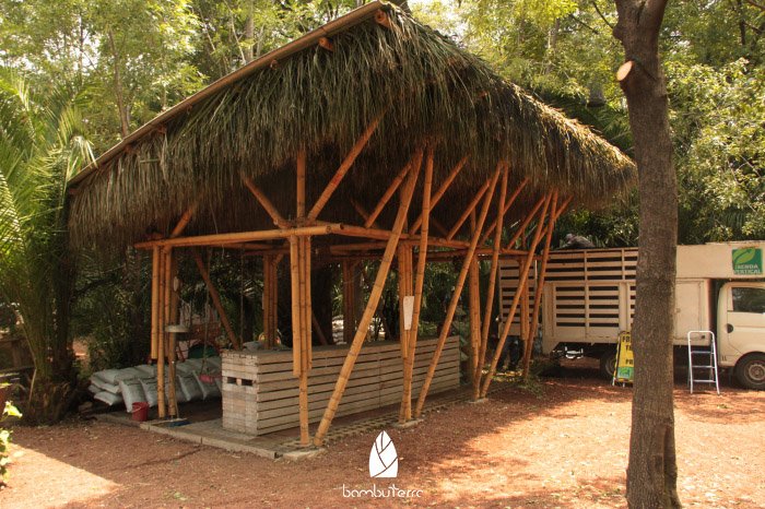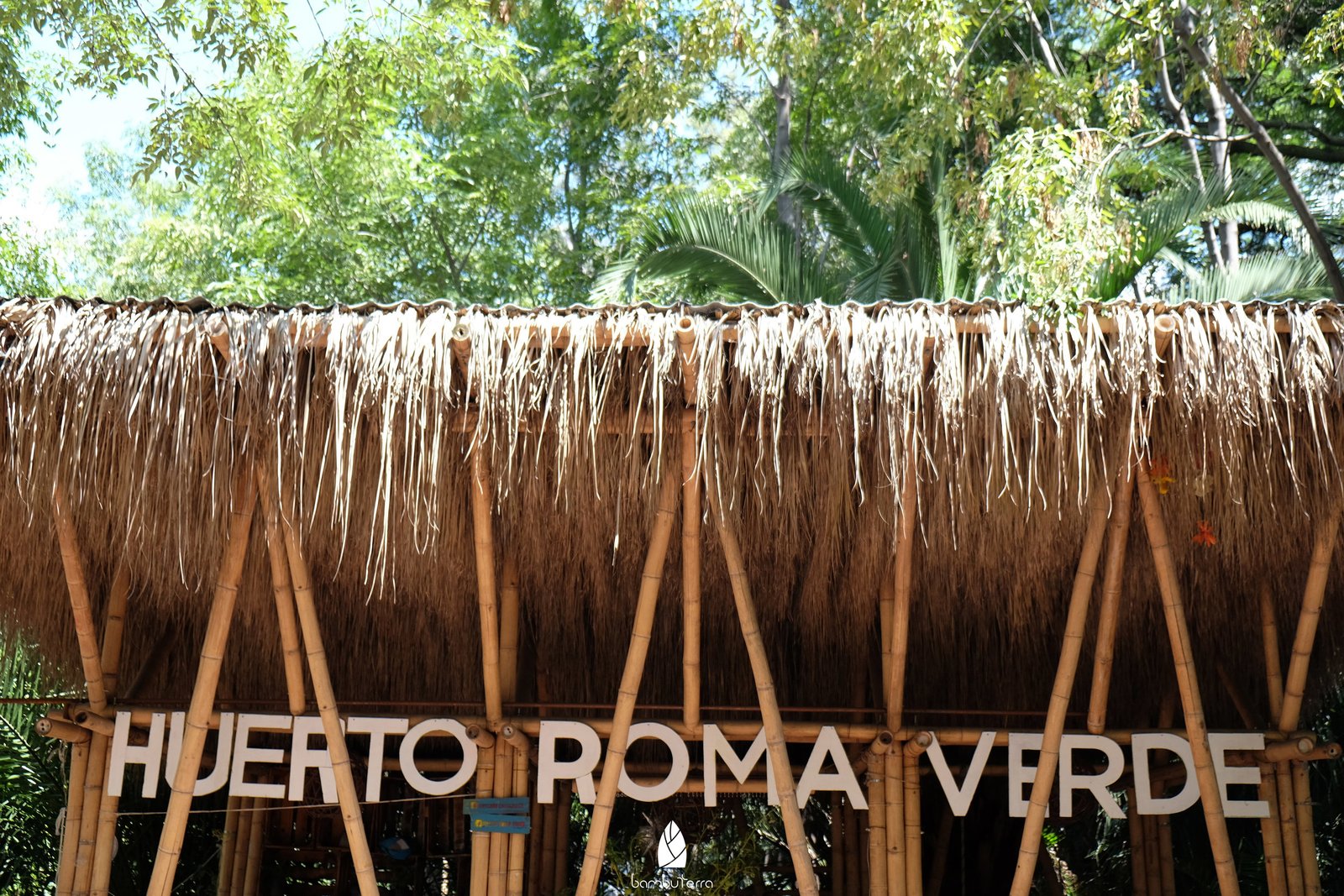 Estructura ligera que alberga la tienda sustentable del Huerto Roma Verde.